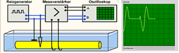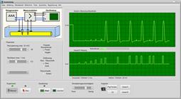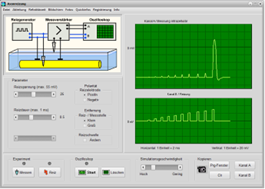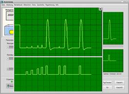 elektrischen Impulsen variabler Amplitude und Dauer. Die Signale der Reize und Erregungen werden auf einem Oszilloskopschirm aufgezeichnet. |